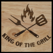 This beautiful BBQ Set from the Market Craft Group at The Shed includes hand crafted from our Xtool, Hard Wood Serving Board, Apron and Spatula. The serving board comes in two designs the ‘King of the Grill’ and ‘Did Someone Say Sausages’ with 7 dog designs to choose from.